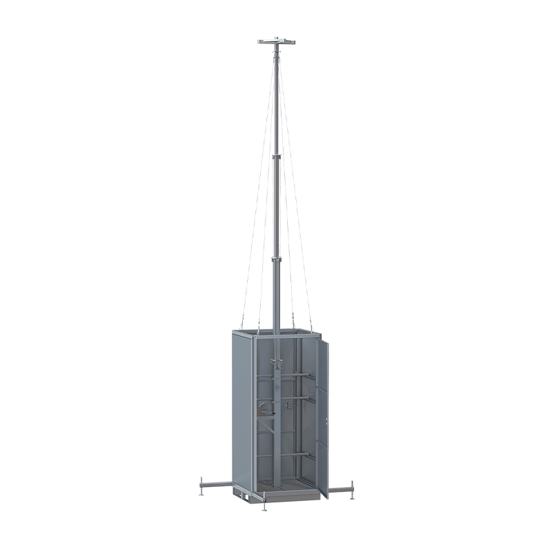 The MSB6-Basic is fully constructed using galvanised steel which makes it vandalism proof. The MSB6-Basic has two lockable doors to store the equipment and four stabilisers, and is equipped with an extendable telescopic mast up to 6 metres.